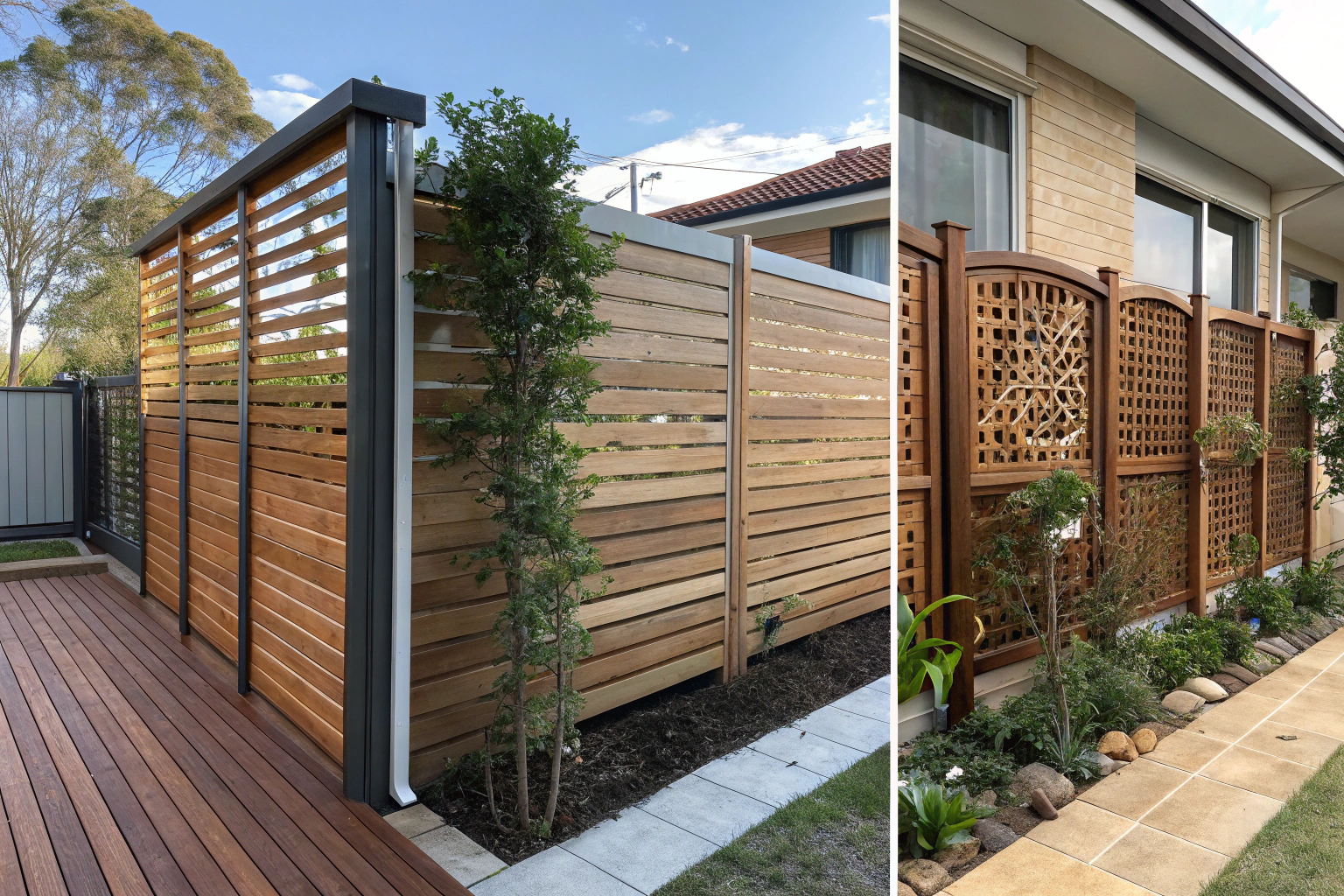Visual style matters as much as function when screening becomes a permanent backyard feature. Different timber arrangements create distinct aesthetics while solving the same privacy challenges.